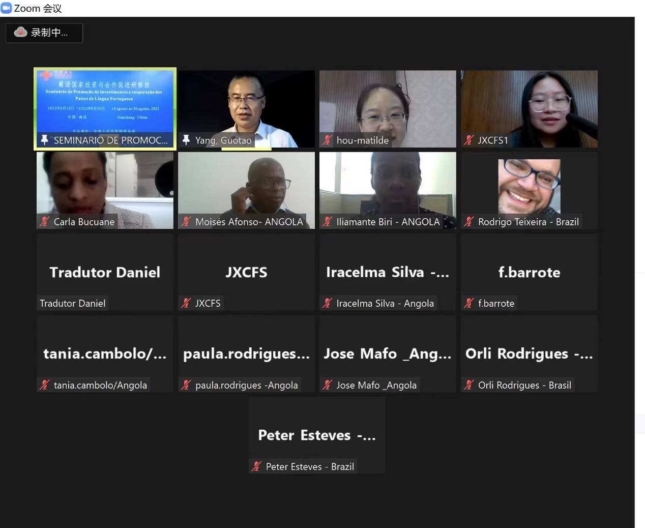 2022年8月10日至8月30日,由商务部主办、江西省商务厅承办、江西外语外贸职业学院具体组织实施的“葡语国家投资与合作促进研修班”在线培训成功举办。此次研修班共有来自巴西、莫桑比克和安哥拉3个国家的41名学员参加培训。91九色