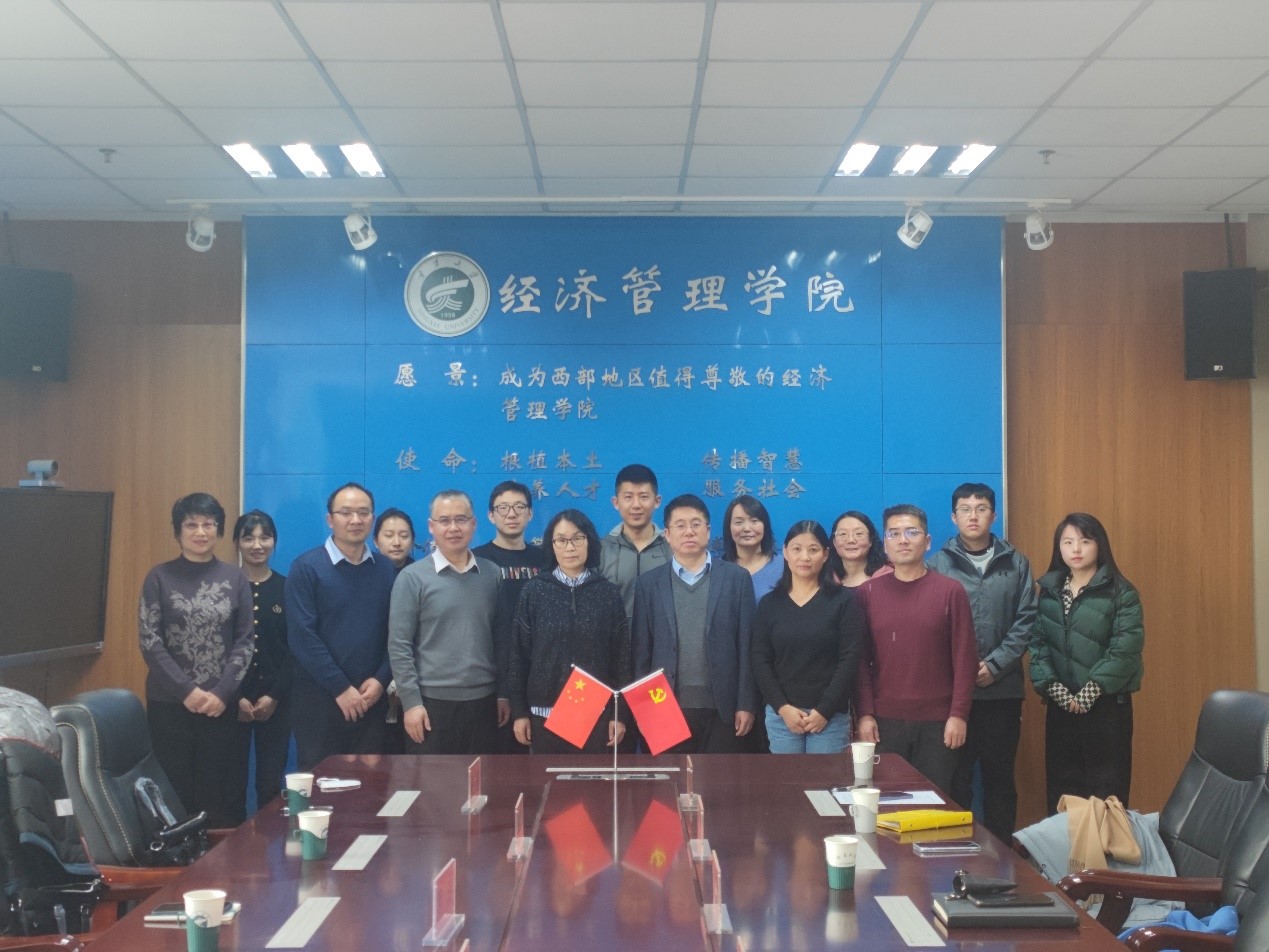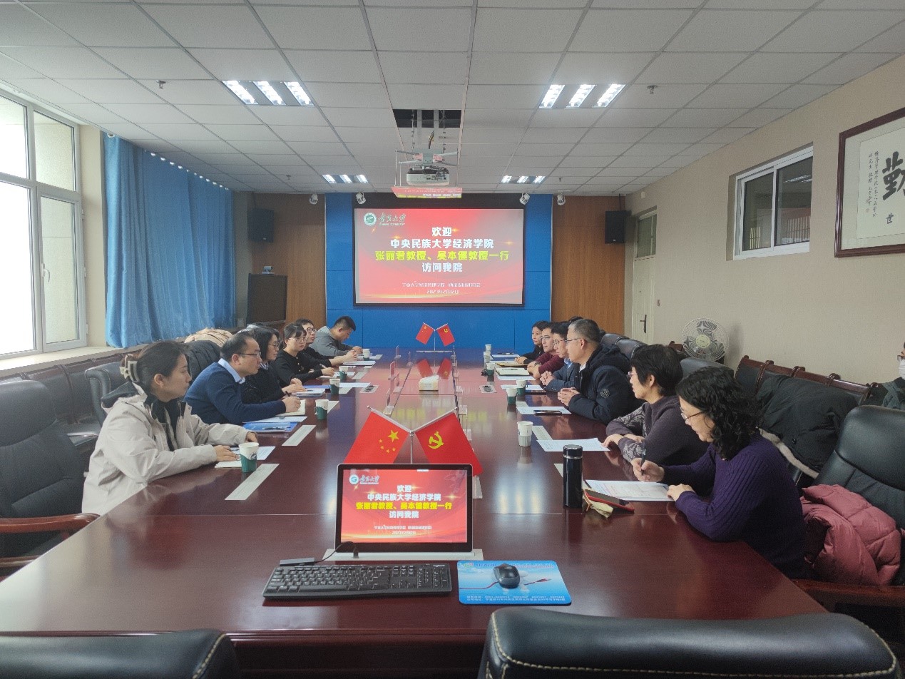 2月12日,中央民族大学经济学院原院长、中国兴边富民战略研究院执行院长张丽君教授和中央民族大学经济学院副院长吴本健教授、博士生等一行六人来91九色