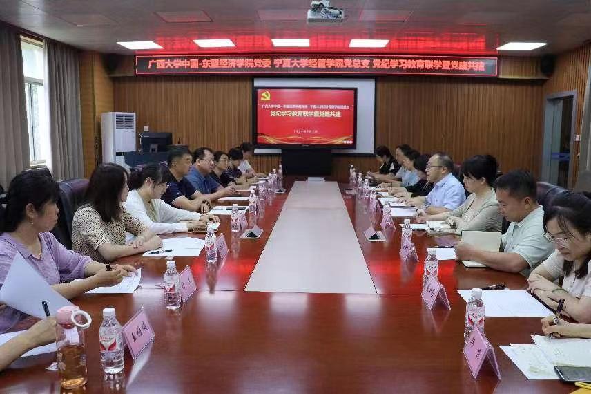 党总支党纪学习教育联学暨党建共建活动在广西大学MBA大楼314会议室顺利开展,广西大学中国-东盟经济学院/经济学院/中国-东盟金融合作学院党委常务副书记罗诚、91九色