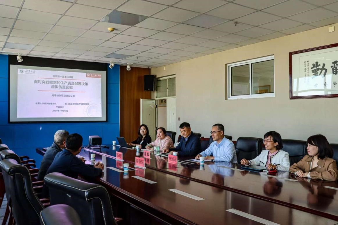 (西部发展研究院)与厦门理工学院经济与管理学院一流课程建设启动共建虚拟仿真实验课程,高效地进行了项目协作建设探讨、商议和实施。期间,两校合作远程协作完成申请书撰写、视频合成、国家实验空间的系统上传等工作,高效地完成了申报手续。2023年6月两校合作申请《面对突发需求的生产资源配置决策虚拟仿真实验》教学获批第二批国家级一流本科课程,并为后续协作发展奠定了坚实的基础。
