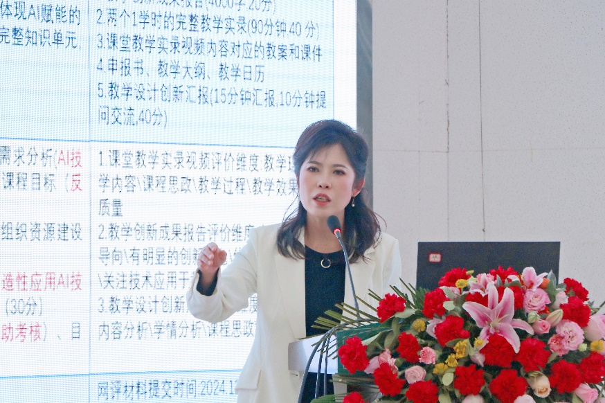 韩立老师以“人工智能在‘政治经济学’课程中的实践应用与探索”为题,分享了人工智能赋能混合式教学的创新举措,贯穿教学目标、学情分析、教学活动设计及评价反馈的全过程,探索人工智能背景下教学范式的转变,为智慧课程建设提供了示范性经验。