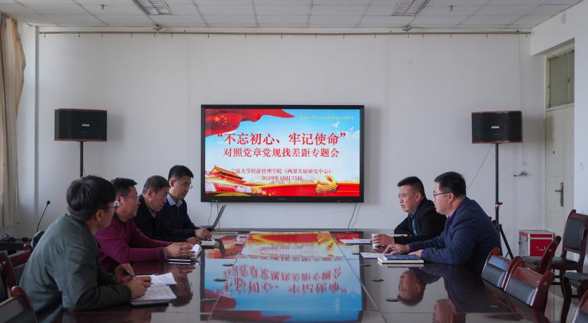 在贺兰山文荟楼902会议室开展“不忘初心,牢记使命”对照党章党规找差距专题会。学院副处级以上领导干部参加了本次会议。