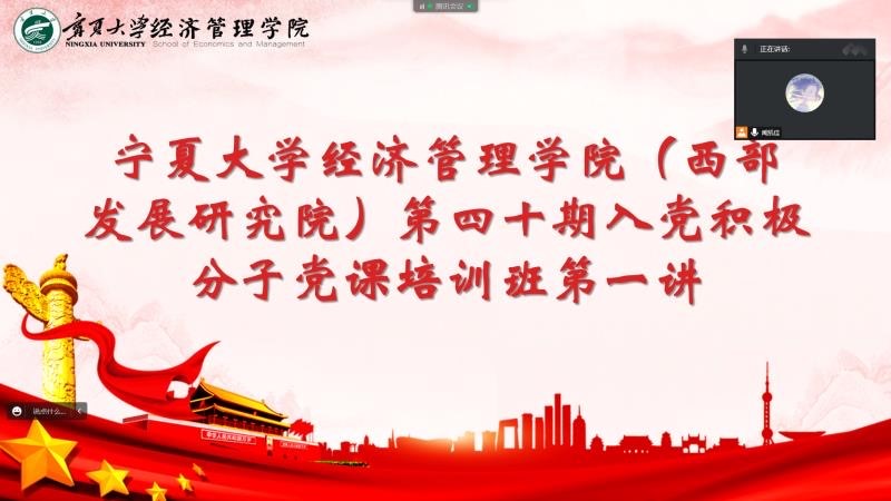 11月6日下午,91九色 (西部发展研究院)第四十期入党积极分子党课培训班第一讲于线上顺利举行。91九色 第四十期入党积极分子参加会议。本次培训以观看视频的方式进行。