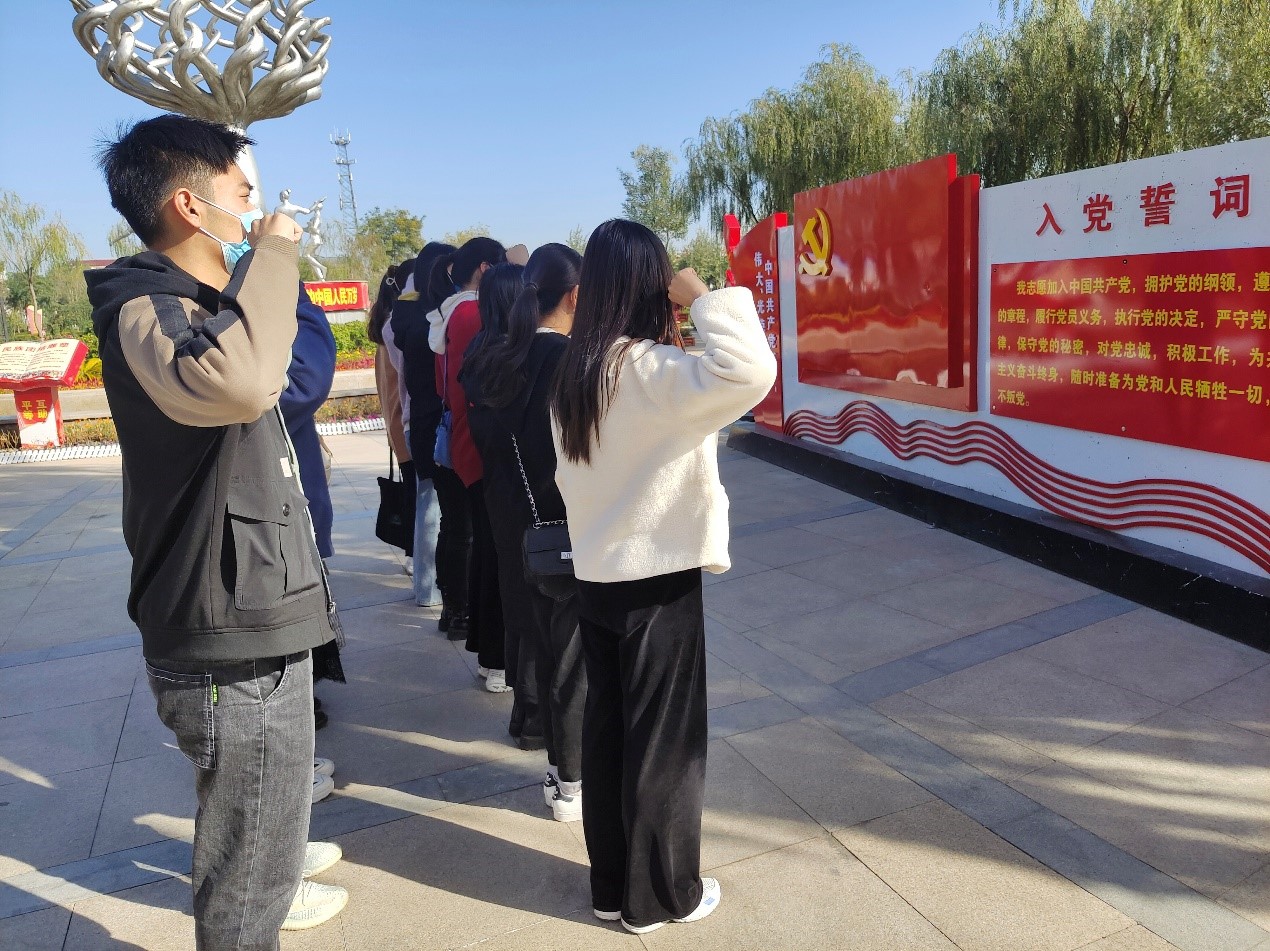 在闽宁镇镇史馆的教育基地前,会计专业硕士研究生党支部书记叶晨露领誓,带领全体党员面对党旗进行了庄严宣誓,重温了入党誓词:“我志愿加入中国共产党,拥护党的纲领,遵守党的章程……”,铿锵有力的誓词表达了大家对党的忠诚和为党奉献的坚定决心。