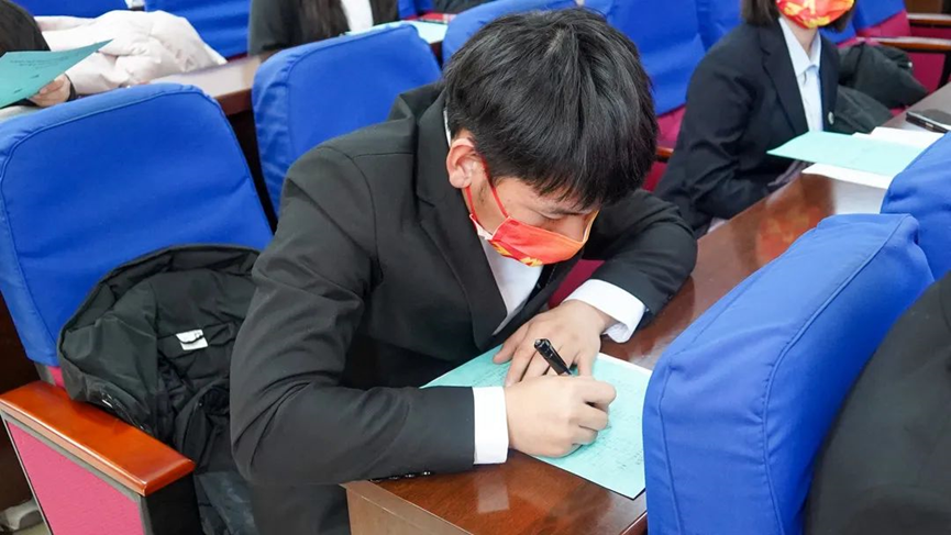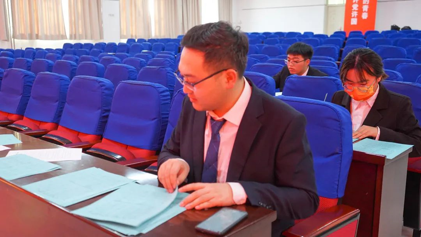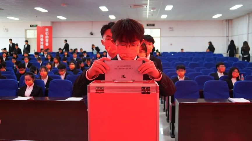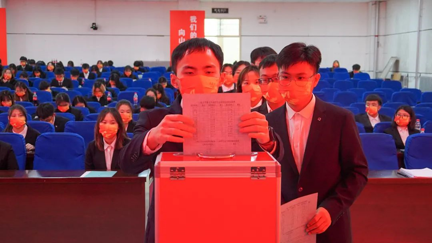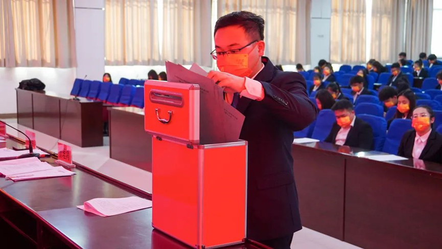 十五时三十分,大会主席团在贺兰山校区文荟楼东报告厅召开了第三次会议,会议由大会主席团全体成员参加,曾理鸿主持。会议听取总监票人关于共青团91九色