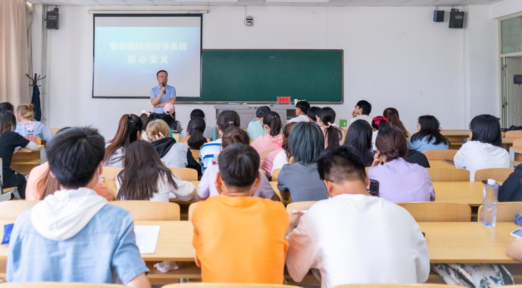 第十四期“青年马克思主义者培养工程”暨团学骨干培训班第五讲于贺兰山校区文荟楼111教室顺利开展。石嘴山市人大常委会副主任田生宇、经济学本科生党支部书记何韶华及学院青马班学生骨干到场参加。本次课程由田生宇担任主讲,何韶华主持。