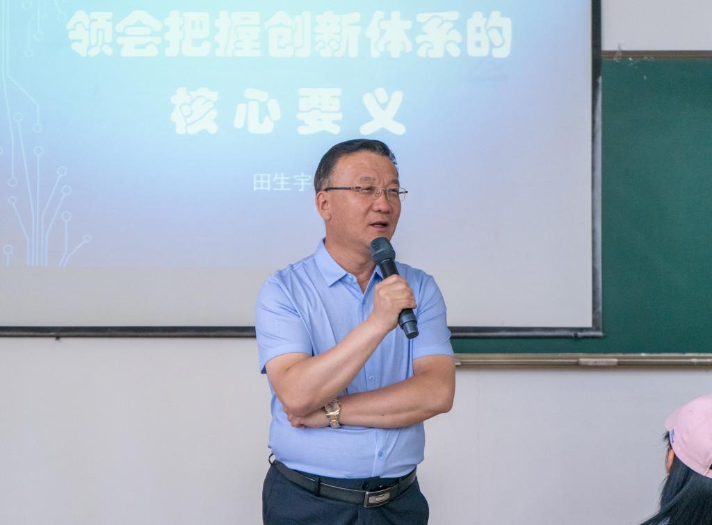 田生宇以2021年5月28日,习近平总书记在中国科学院第二十次、中国工程院第十五次院士大会和中国科协第十次全国代表大会的讲话为切入点展开了本次课程。习近平总书记讲到,我国广大科技工作者要面向世界科技前沿、面向经济主战场、面向国家重大需求、面向人民生命健康,把握大势,抢占新机,直面问题,迎难而上,肩负起新时代赋予的重任,努力实现高水平科技自立自强。