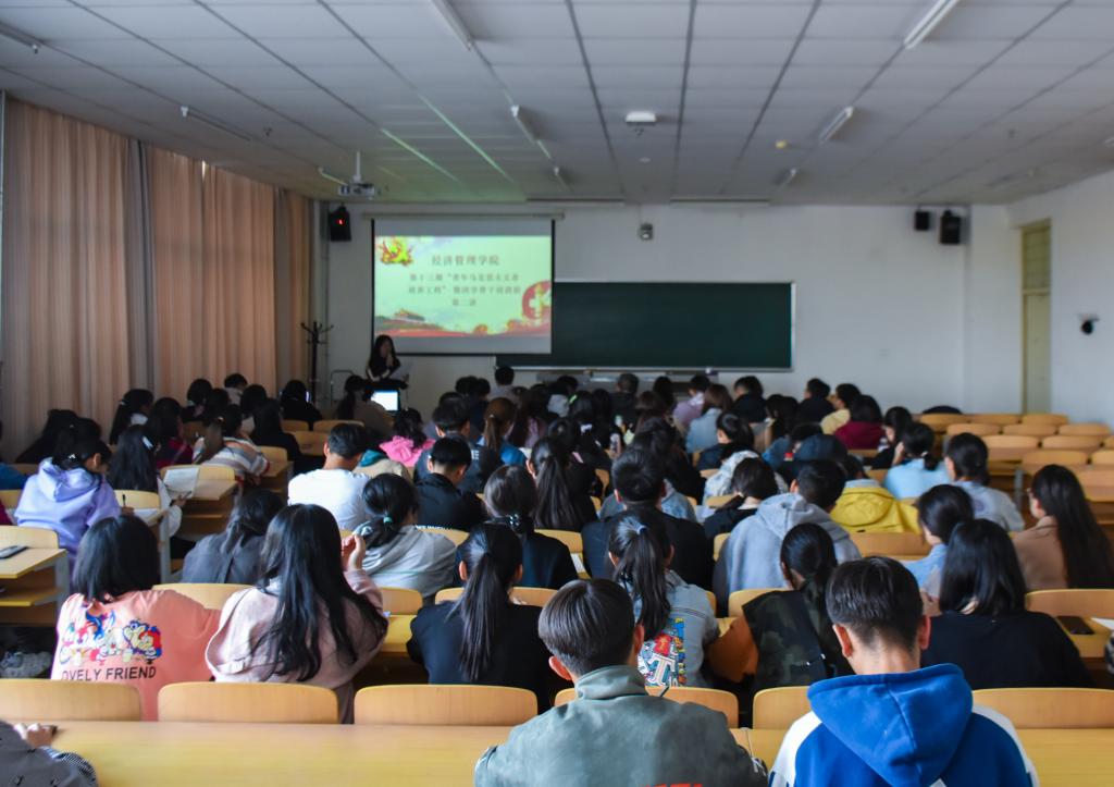 于贺兰山校区文荟楼224教室开展了“团员互助:学长学姐‘暑期三下乡社会实践活动’经验分享”——第十三期青马班第二讲课程。学长谭彪、罗俊盛,学姐王珏、彭燕、虎亚茹以及第十三期全体青马班学员到场参会。本次课程由谭彪、罗俊盛、王珏和彭燕进行经验分享,虎亚茹主持。