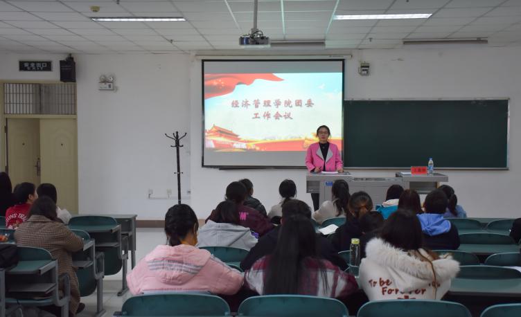 于贺兰山校区文荟楼130教室召开团学工作会议。学生工作办公室负责人王嘉豫,以及团委学生干部、各班团支书到场参加。