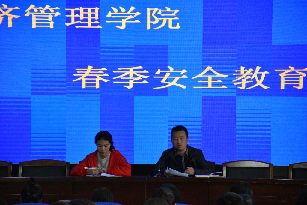 14级、15级春季安全教育大会在贺兰山校区文科楼东报告厅顺利召开,学院党委副书记桂晓兵、学生工作办公室主任黄旭兴及两个年级的辅导员参加会议,14级、15级全体学生参会。