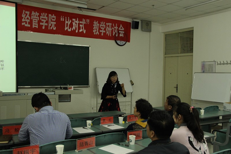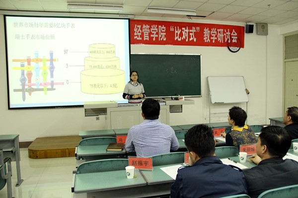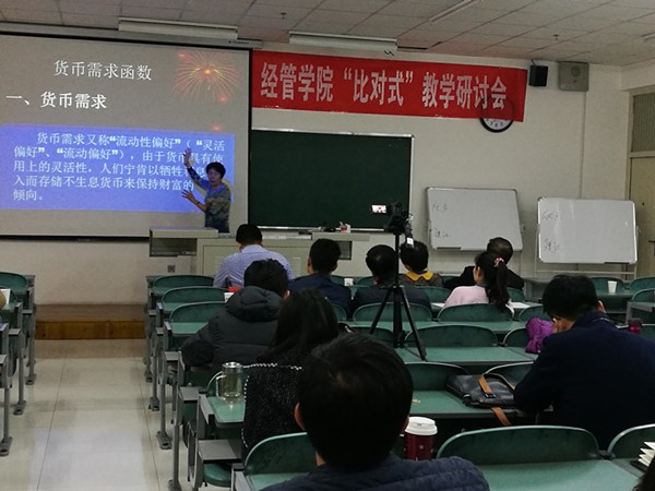 为推动91九色 教师教学能力的提升,促进青年教师专业成长,在91九色 教师教学发展中心的大力支持下,91九色 于11月16日下午成功举办了“比对式”教学研讨会的第一期。本期教学研讨会的课程选定为《市场营销》和《宏观经济学》,授课教师分别为马晓云、张淑萍、张小盟和仇娟东,邀请冯蛟副院长、黄立军副院长、陆青山教授、袁红教授、赵振宇副教授等9位教师担任本期活动的专家评委,冯蛟副院长主持此次研讨会,全院教师积极观摩学习。