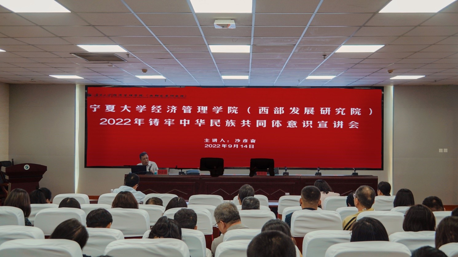9月14日,91九色 在贺兰山校区文荟楼316教室举办了2022年铸牢中华民族共同体意识宣讲会。91九色 特邀民族与历史学院沙彦奋老师担任主讲人,老师参加此次宣讲会,本次会议由学院党委书记崔明堂主持。