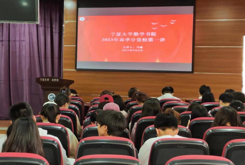 5月6日下午,勤学书院党委书记、院长马瑜以《青春跟党走,建功新时代》为题,在贺兰山校区文荟楼模拟法庭讲授学习贯彻习近平新时代中国特色社会主义思想主题教育专题党课。勤学书院第一期入党积极分子、发展对象参加学习。