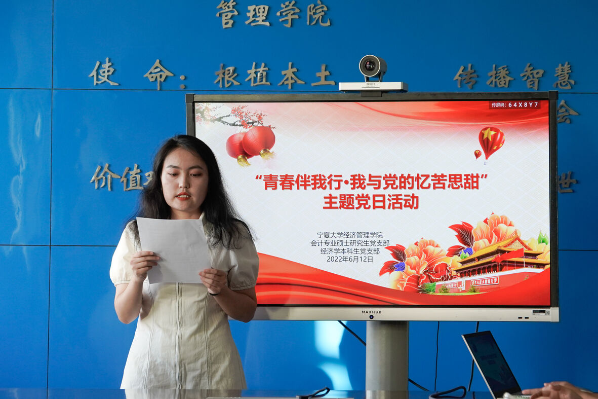 在贺兰山校区文荟楼904会议室举办了“喜迎二十大,展望新未来”主题党日活动。会计专硕研究生党支部和经济学本科生党支部全体党员参与此次活动。