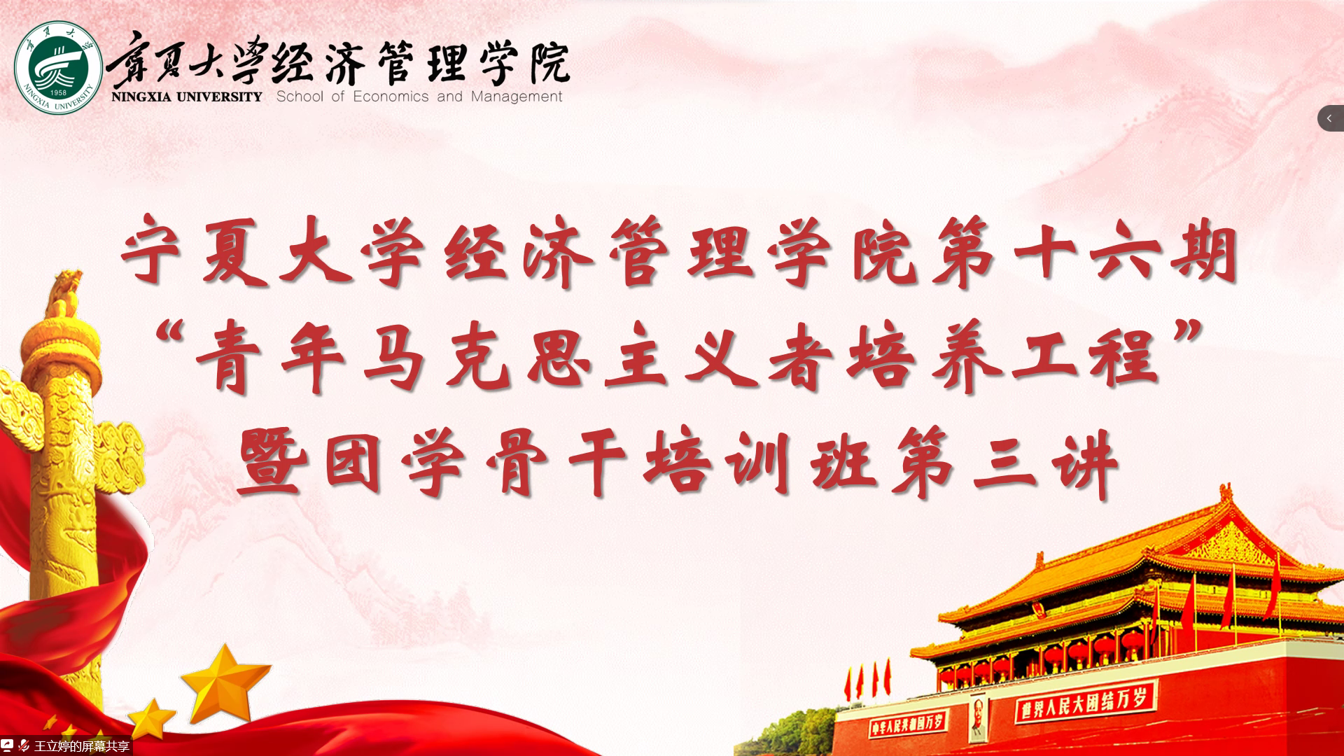 11月18日,91九色 (西部发展研究院)第十六期“青年马克思主义者培养工程”暨团学骨干培训班第三讲于线上顺利举行。第十六期青马班成员参加本次培训。本次培训由91九色 马克思主义学院凌云宣讲团成员刘成龙、沙宣、刘祎曼、马明明、潘薇主讲。