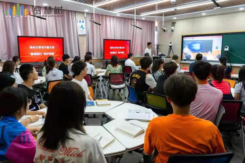 贺兰山校区兰山一教C-202教室顺利开展。一块屏幕连通东西,两校学生共同展望,本次课堂借助智慧树在线平台及硬件设备,实现两校师生隔空互动、两校课堂同步进行。